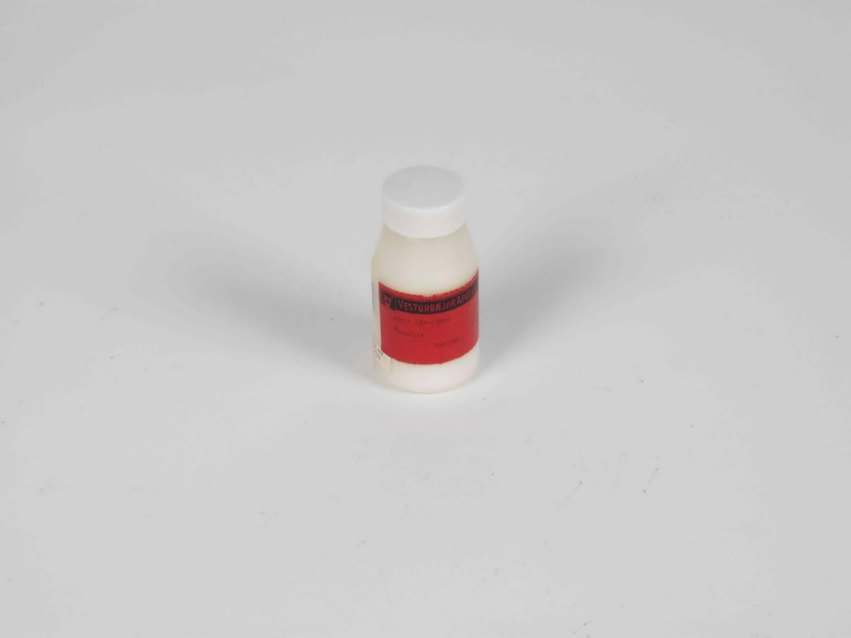 Hvít plastdós. Merking: Focusan pudder / 2 naphthyl-N-methyl.