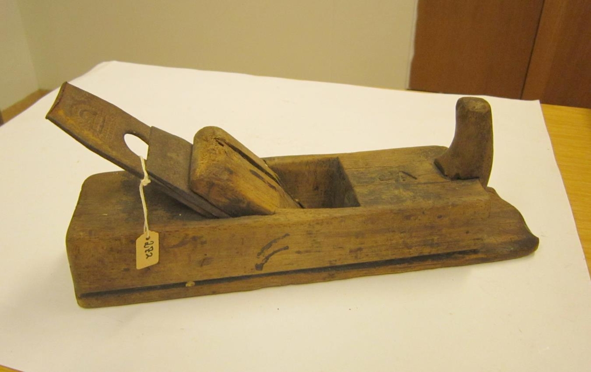 Stutthefill, sem Gísli Andrésson smíðaði sjálfur úr bút, sem hann fann á Hjörseyjargranda. Á tréhlutanum er brennimarkið GA, lengd 26,3 cm.