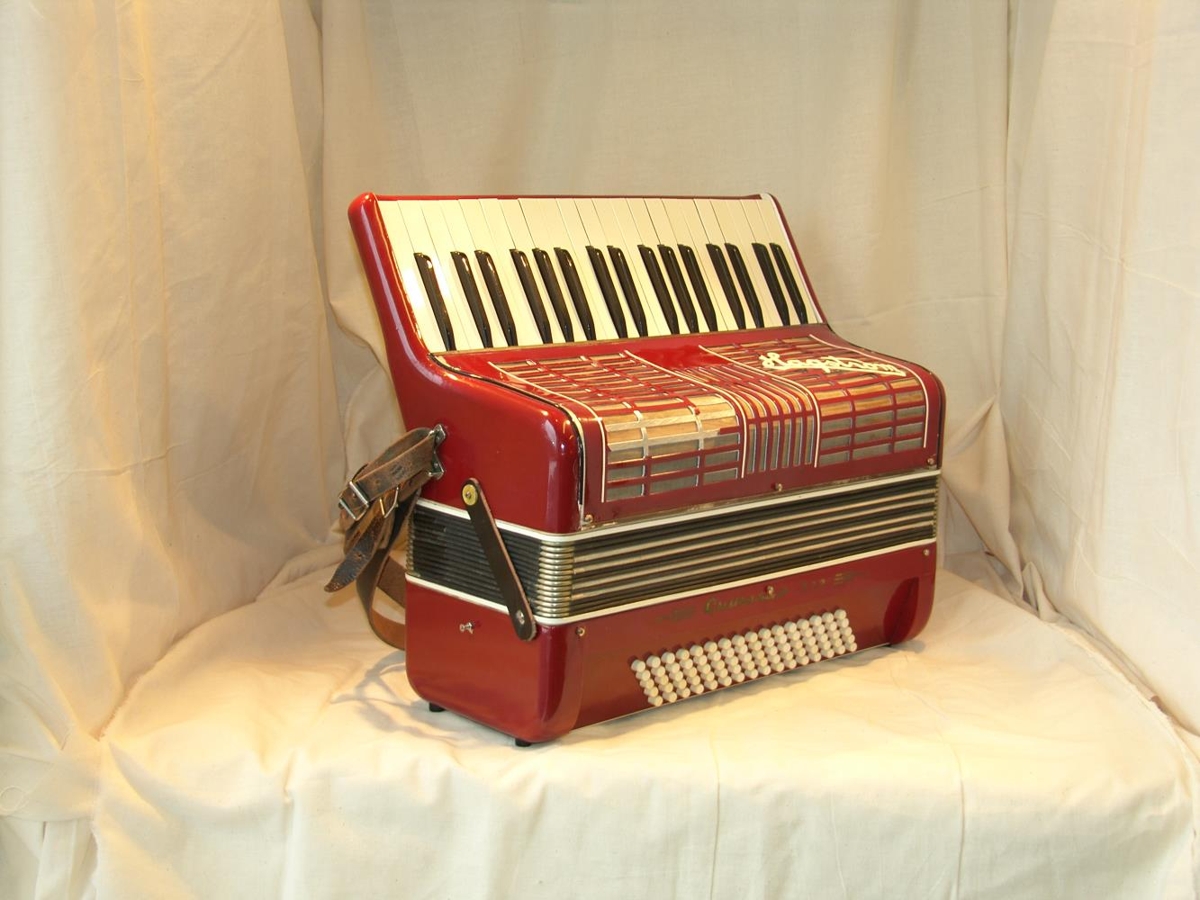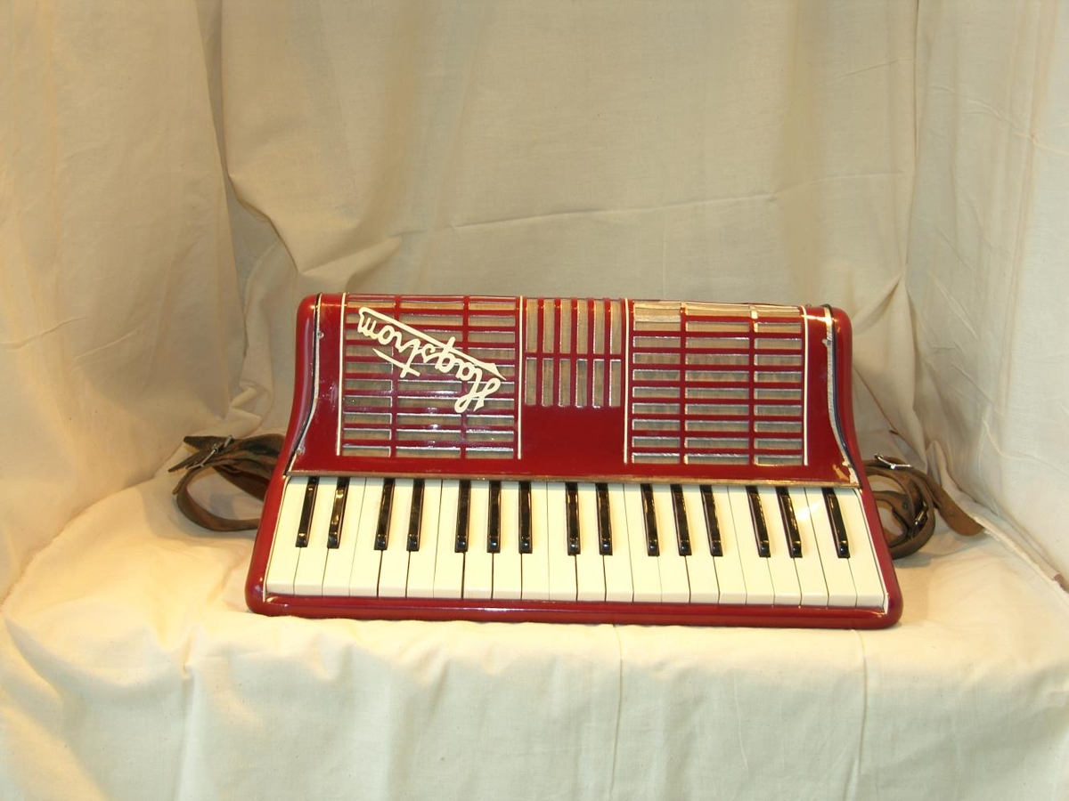 Rauðbrún píanóharmonika af gerðinni HAGSTRÖM GRANESSA 372, 37 nótur í diskant og 96 í bassa. Framleidd í Svíþjóð. Á bassablokk er skrifað framleiðsluár 1942. Harriet sem er sænsk eignast harmonikuna árið 1943, en það var faðir hennar, Frans Molin sem gaf henni hana. Harriet fluttist til Íslands árið 1951.