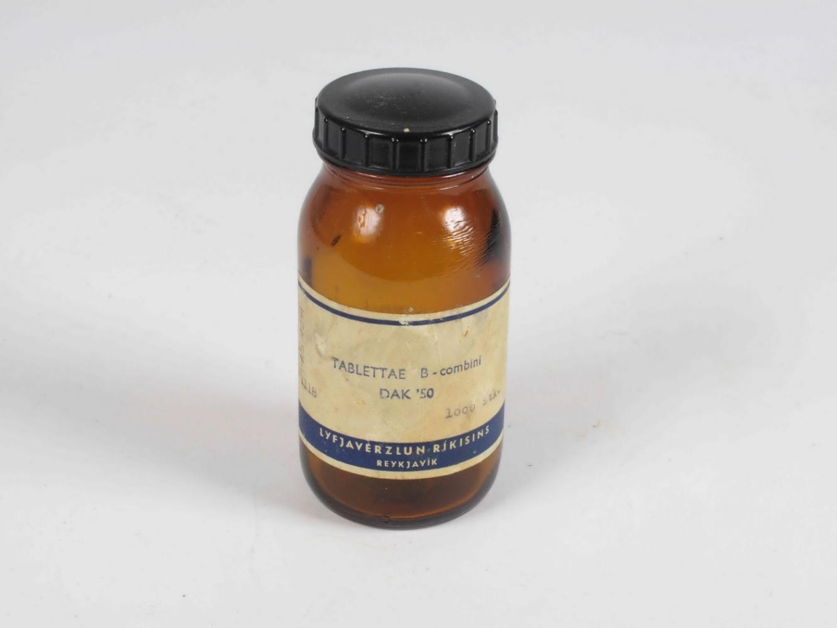 Á glasinu stendur: Tablettae B-combini / DAK '50 1000 stk.