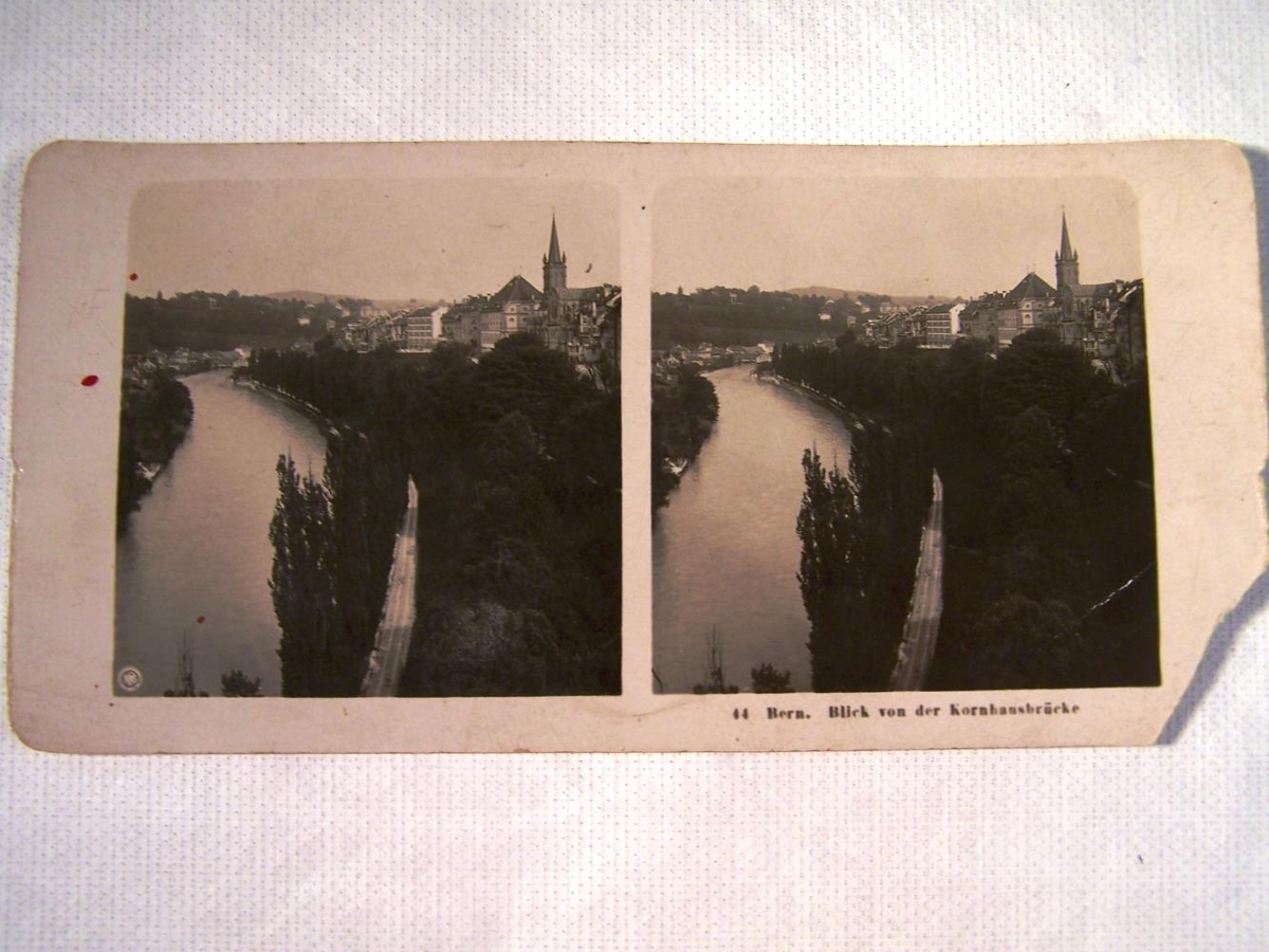 Mynd í stereoscop. Undir mynd stendur: 44 Bern. Blick von der Kornhausbrucke. Á bakhlið: Neue Photograpische Gesellshaft A.G., Steglitz-Berlin 1906.