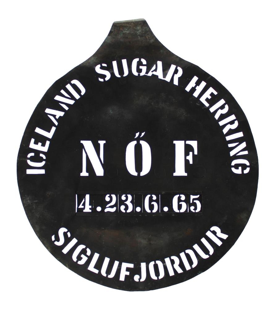 Botnamerki söltunarstöðvarinnar Nafar hf., Siglufirði. Efribotnamerki, hálftunna. Skafti Stefánsson, eigandi Nafar, saltaði síld á Siglufirði frá 1918 eða 1919 og þar til að síldarævintýrinu lauk (Benedikt Sigurðsson).