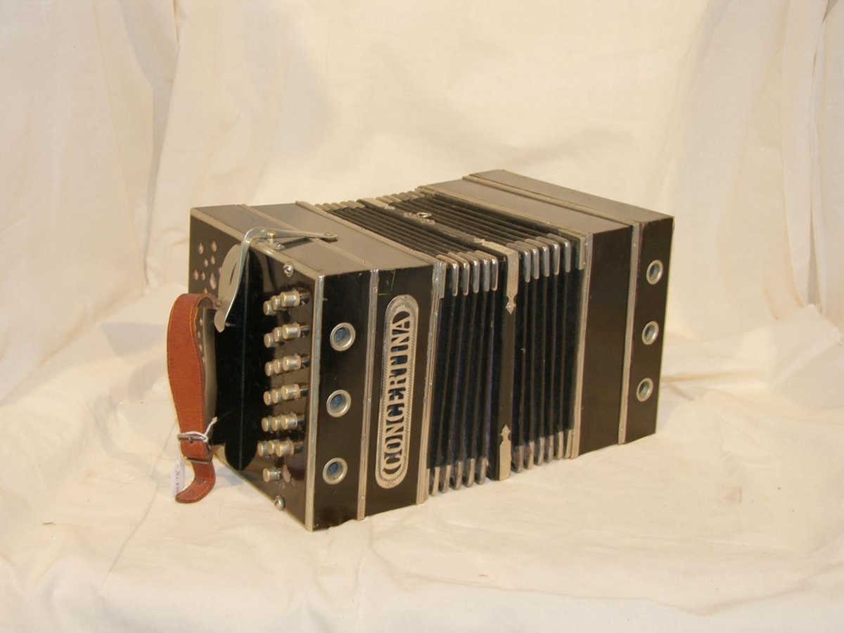 Svört konsertína af ónefndri gerð, 20 nótur öðru megin og 18 hinum megin. Konsertínan er ferstrend með tvöföldum belg. Gefandi fékk konsertínuna úr dánarbúi Hannesar Arasonar tónlistarmanns frá Akureyri.