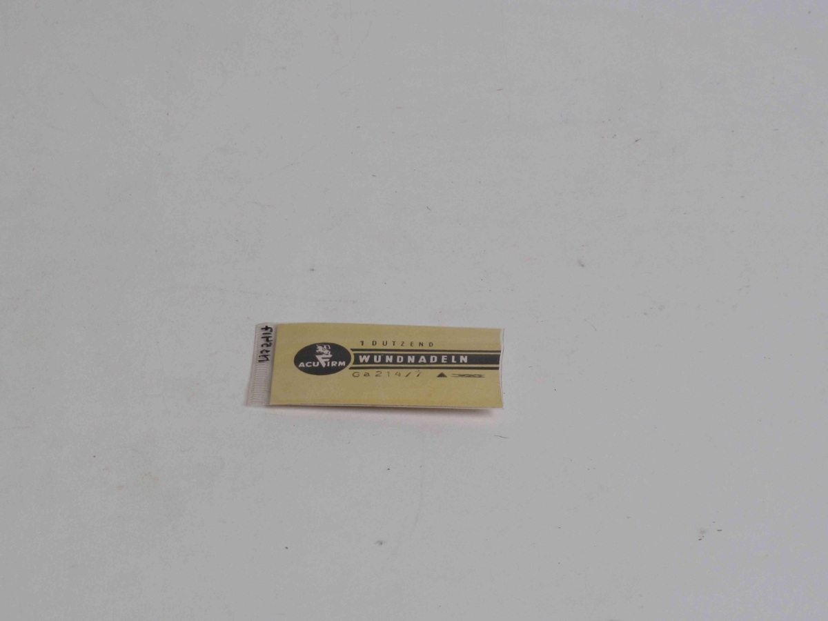 7 nálar bognar, af 12 gulum, í plast umbúðum. "Wundnadeln", Ga 214/7.