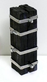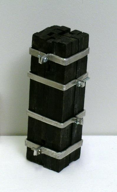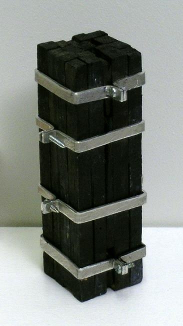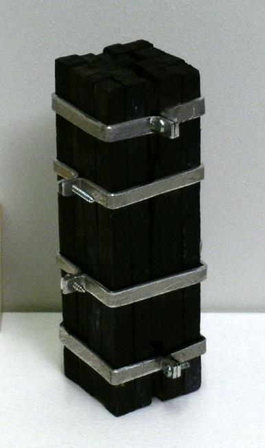 17 trékubbar bæsaðir svartir, allir jafn langir. 4 gyrðum úr áli er vafið um kubbana og halda þeim saman.
