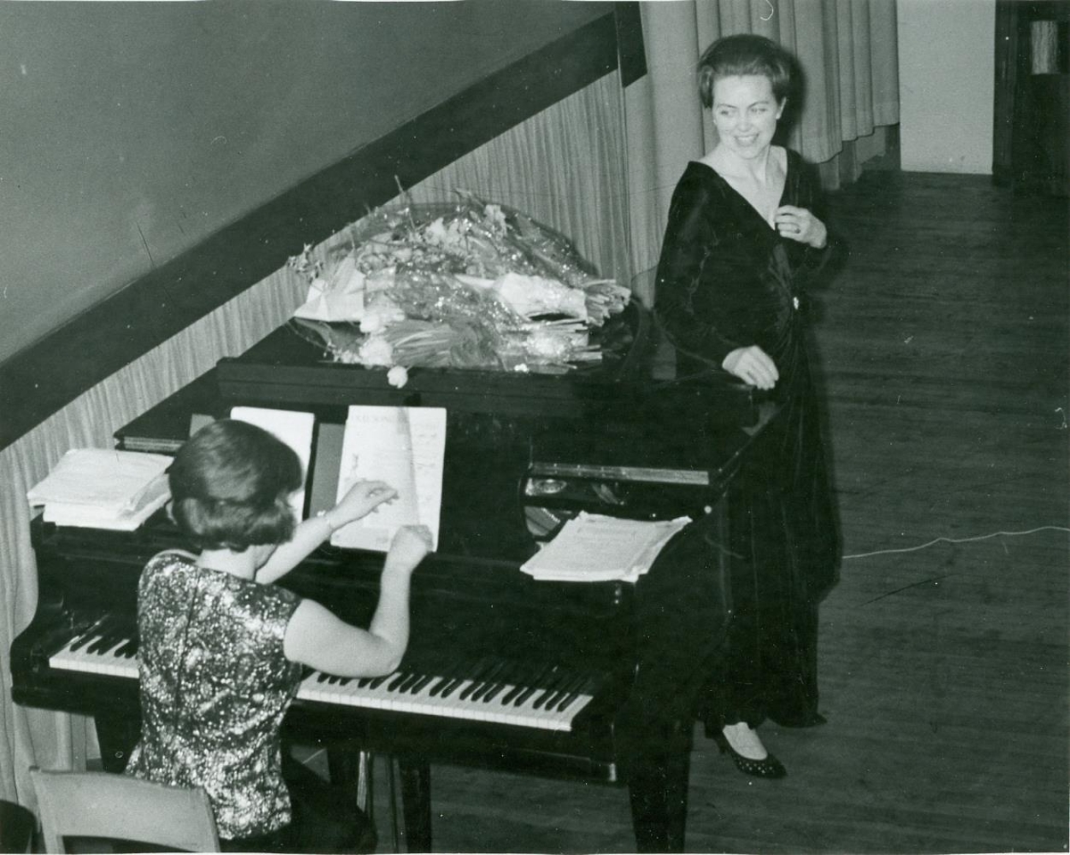 Með skráningunni fylgir ljósmynd frá tónleikunum í Gamla bíói 1965. Þar sést Guðrún í kjólnum og við flygilinn er Guðrún Kristinsdóttir píanóleikari, en hún var undirleikari á tónleikunum. Ljósmyndina tók Frank Ponzi, eiginmaður Guðrúnar. Ljósmyndin er í hennar eigu.