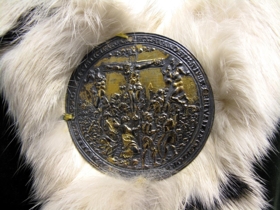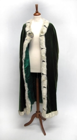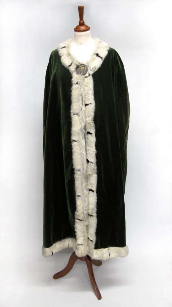 Möttull úr grænu flaueli, fóðraður með samlitu efni og bryddur í hálsmál, að framan- (á boðöngum) og við fald að neðanverðu með hvítu skinni. Inn í skinnkantinn eru festar, með reglulegu millibili, „doppur“ eða dröfnur úr svörtu skinni. Möttullinn er um 120 cm síður, mældur frá öxl. Hann er kræktur við brjóst með kringlu úr gylltu silfri. Mjög er fallið á málminn. Á kringlunni, sem er útlend smíð, er krossfestingarmynd. Ekki er að sjá neina stimpla á spennunni en þó má vera að þeir leynist á bakhliðinni þar sem ekki er hægt að komast að henni, þar sem hún er saumuð við skinnkantinn hægra megin.