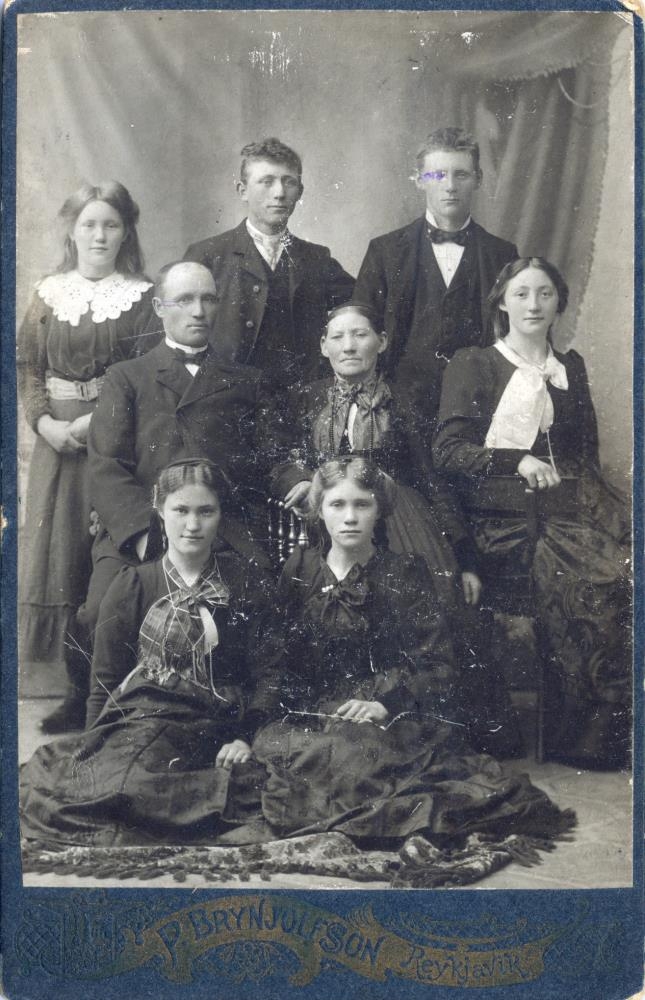 Hjónin Ásmundur Einarsson og Kristín Magnúsdóttir sem bjuggu að Stóra Seli í Reykjavík, ásamt börnum sínum.