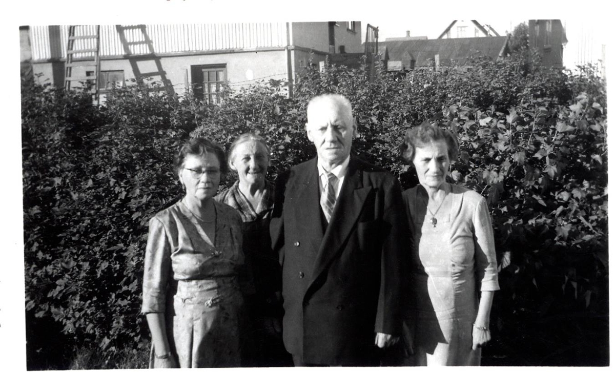 Sigurbjörg, Áslaug og Helga Símonardætur ásamt Aage Edwin listamanni.