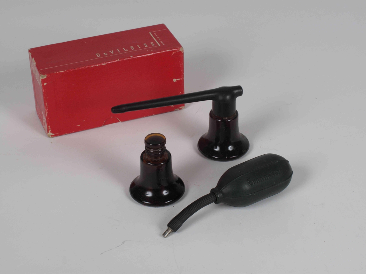Eggjahvítumælir. Tréfótur uppúr honum er glerrör með gúmmítappa ofan á er svo tré hólkur. Til að mæla eggjahvítu í þvagi.