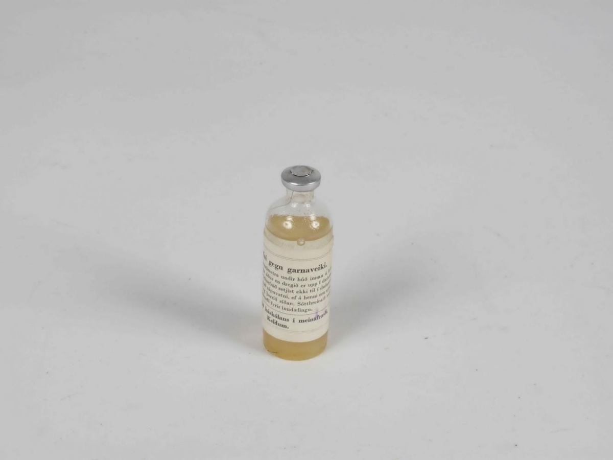 Bóluefni gegn garnaveilu. Er í kassa fóðrað með bómull.