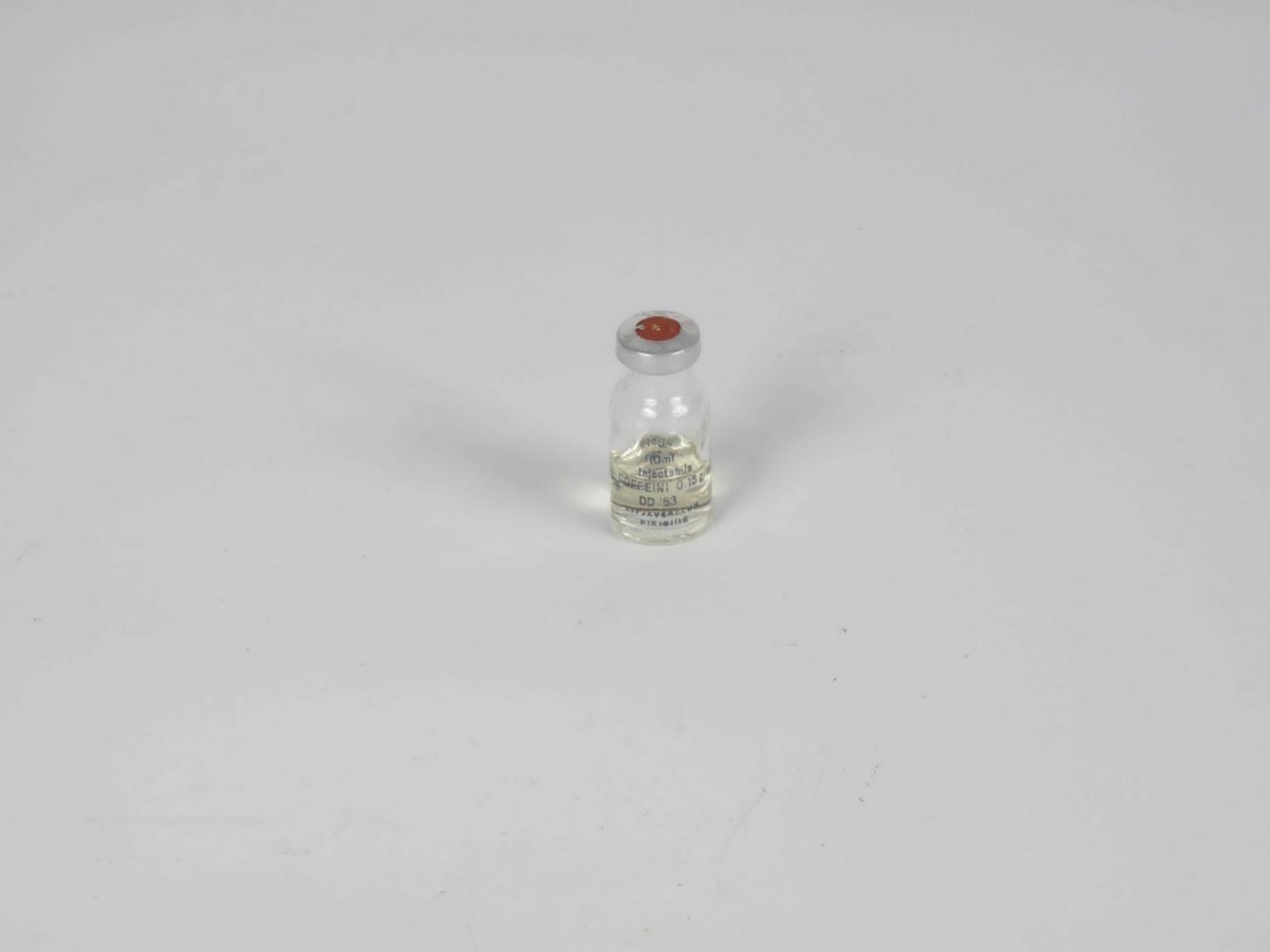 Glerflaska. Merking: 10 ml / Injectabile / Coffeini 0,15g/ml.