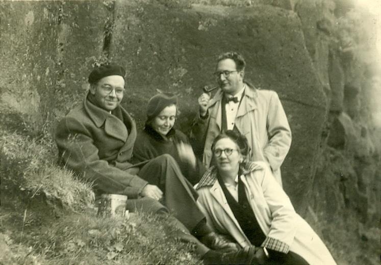 Fjórar manneskjur, tveir karlmenn og tvær konur. Róbert Abraham Ottóson er lengst til hægri og Guðrún Sveinsdóttir situr fyrir neðan hann.