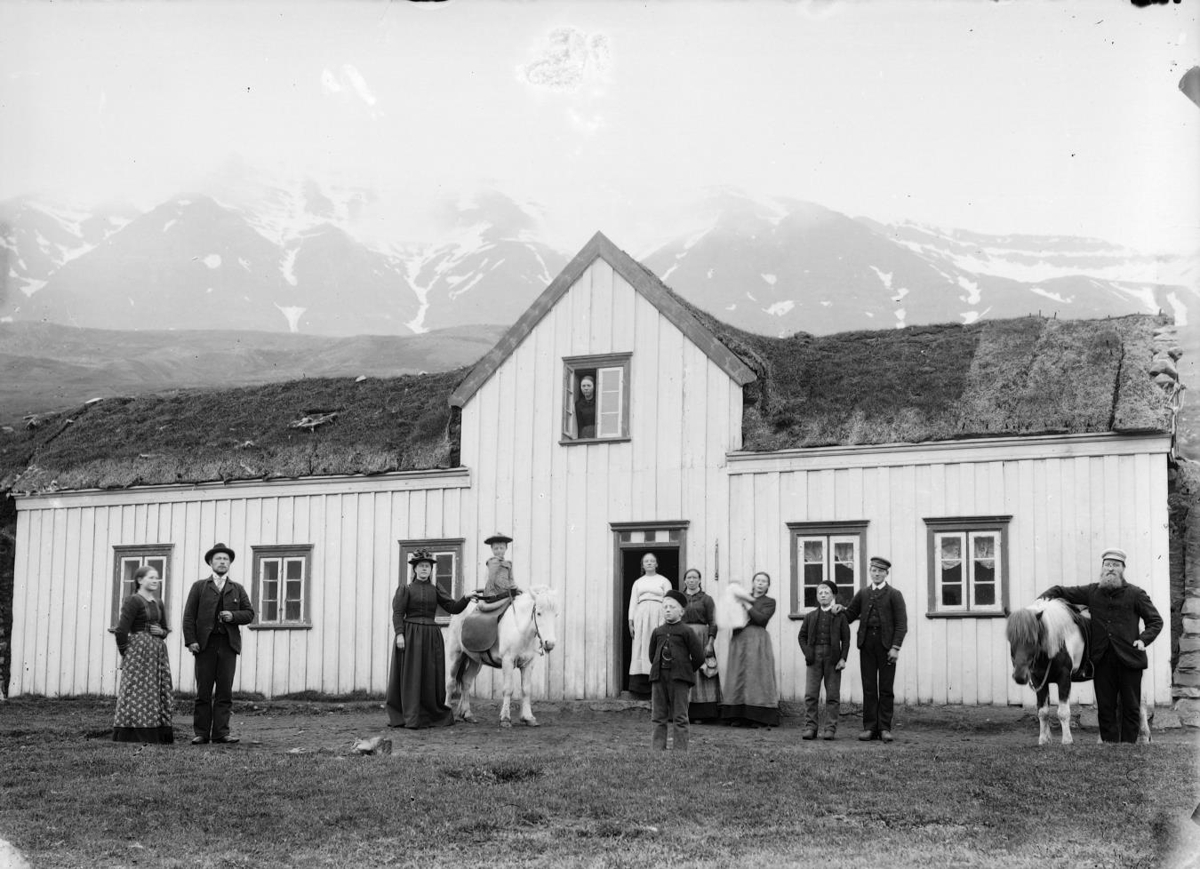 Heimilisfólkið Þverá fyrir framan bæinn.