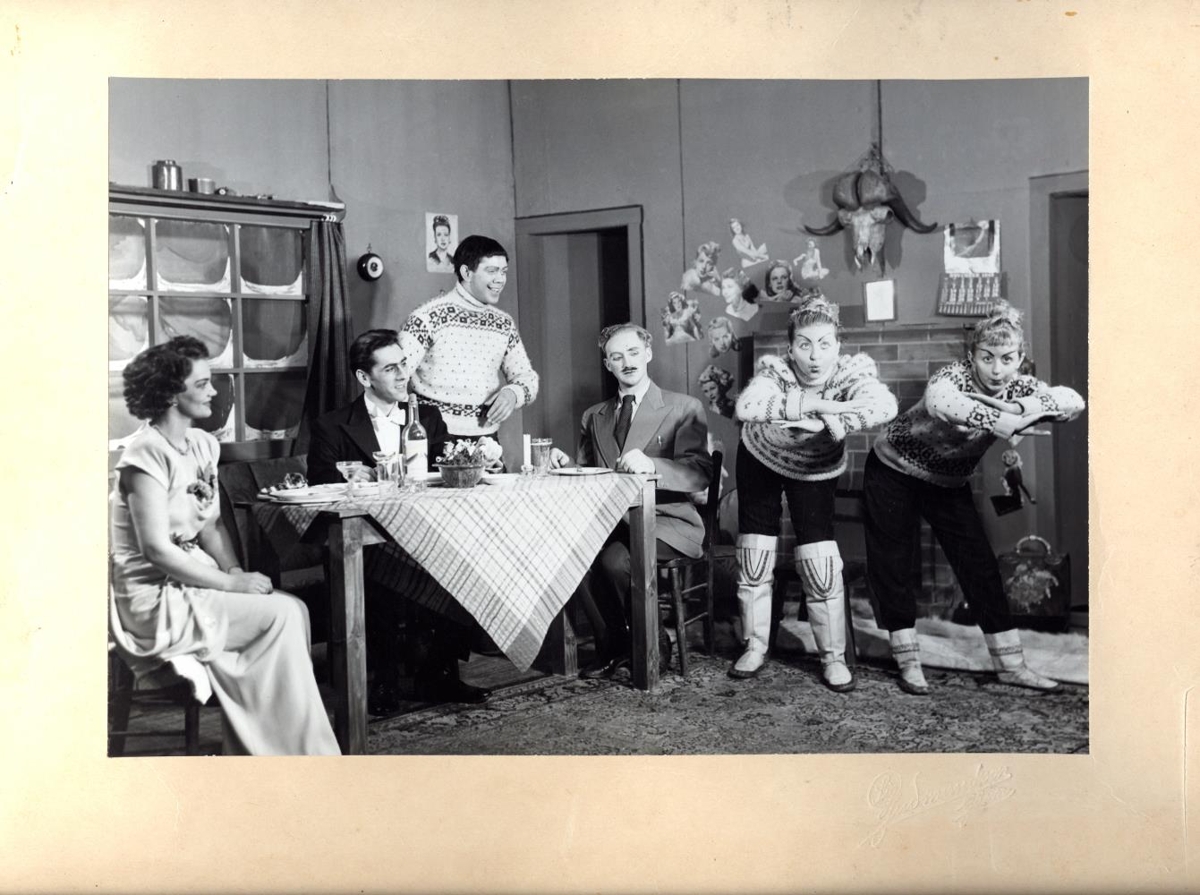 Leikfélag Hafnarfjarðar. Fyrsta verk leikfélags Hafnarfjaðar. Aftan á myndinni er stimpill: Sigurður Gíslason Umboðs og heildverslun Suðurgötu 74, Hafnarfirði. Með blýanti er skrifað: "Ekki er gott að maðurinn sé einn 1949-1950. Leikendur Jóhanna Hjaltalín, Siguður Kristinsson, Valgeri Óli Gíslason, Arsæll Pálsson Elín Jónsdóttir, Guðrún Jónsdóttir.