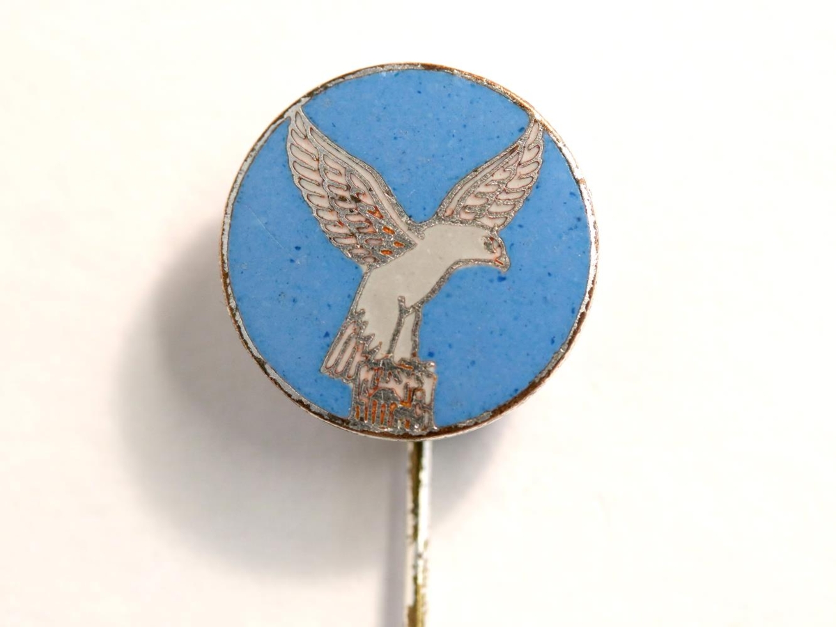 Barmmerki með merki Sjálfstæðisflokksins: fálka sem hefur sig til flugs. Merkið er á hringlaga plötu sem fest er við prjón til að næla í fatnað. Platan er emaléruð, bakgrunnur er blár en fálkinn er hvítur með silfruðum útlínum. Ekki er ljóst frá hvaða tíma merkið er en ætla má að það sé frá síðari helmingi tuttugustu aldar.