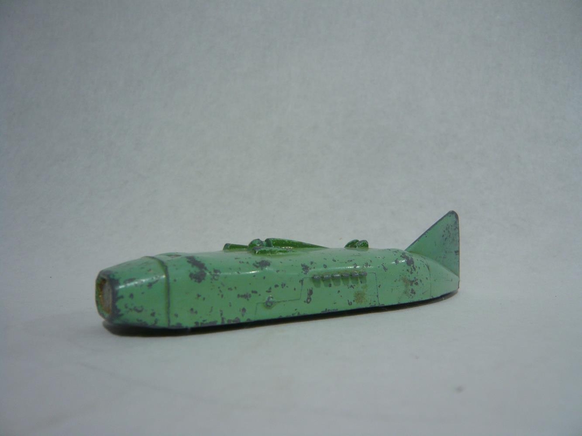 Leikfangabíllinn er eftirlíking af George Eyston’s Thunderbolt þotu bíl. Bíllinn setti heimsmet í hraðaakstri árið 1938 og hélt því í 17 ár, hann keyrði á 556.03 km/klst.