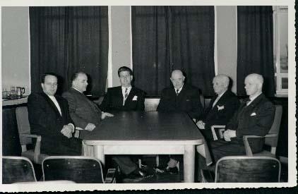 Stjórn Sparisjóðs Hafnarfjarðar 1962. Á myndinni eru frá vinstri; Stefán Gunnlaugsson, Stefán Jónsson, Mattíhas Á. Mathiessen sparisjóðsstjóri, Bjarni Snæbjörnsson formaður stjórnar Sparisjóðsins, Ingólfur Flygenring og Ólafur Tryggvi Einarsson.