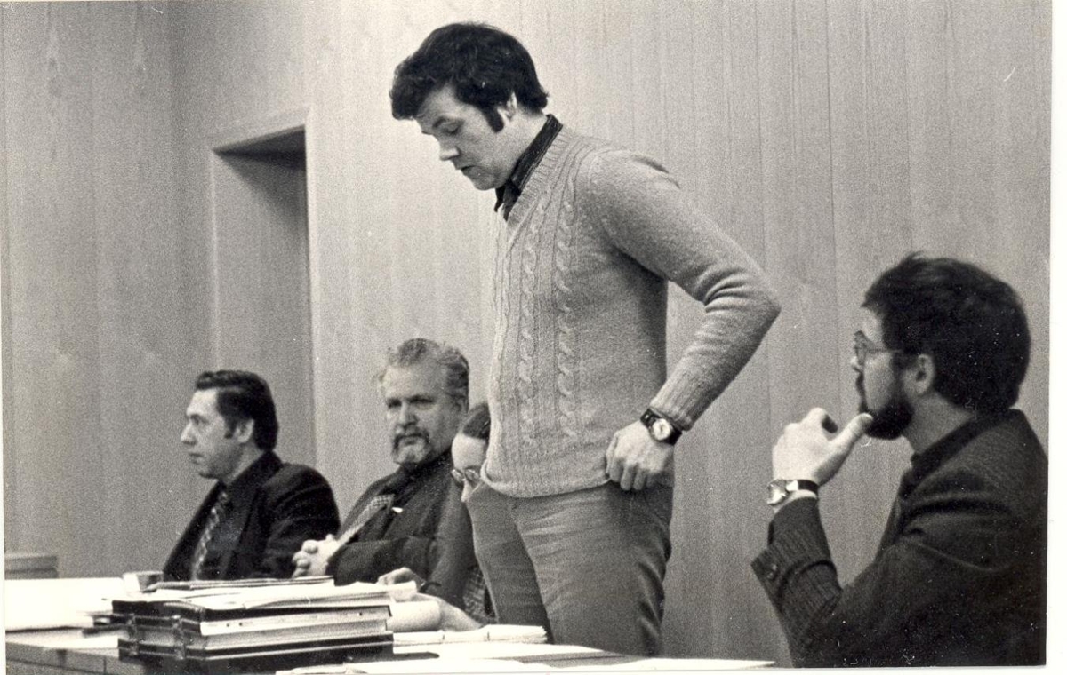 Frá vinstri sitjandi: Jón Bergsson, Hörður Zóphaníasson, standandi Ægir F. Sigurgeirsson, lengst til hægri óþekktur.