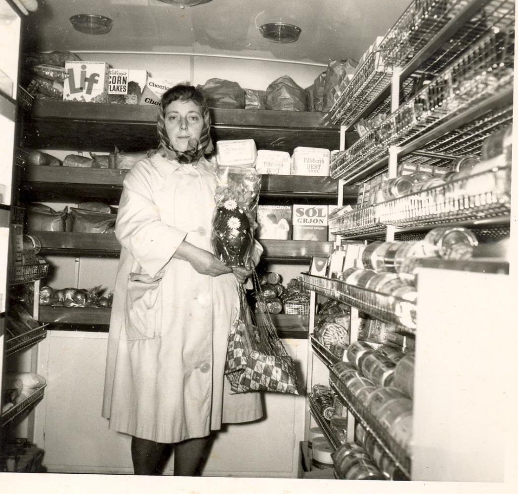 Nikulína Einarsdóttir í Kaupfélagsbílnum með stórt páskaegg í fanginu
