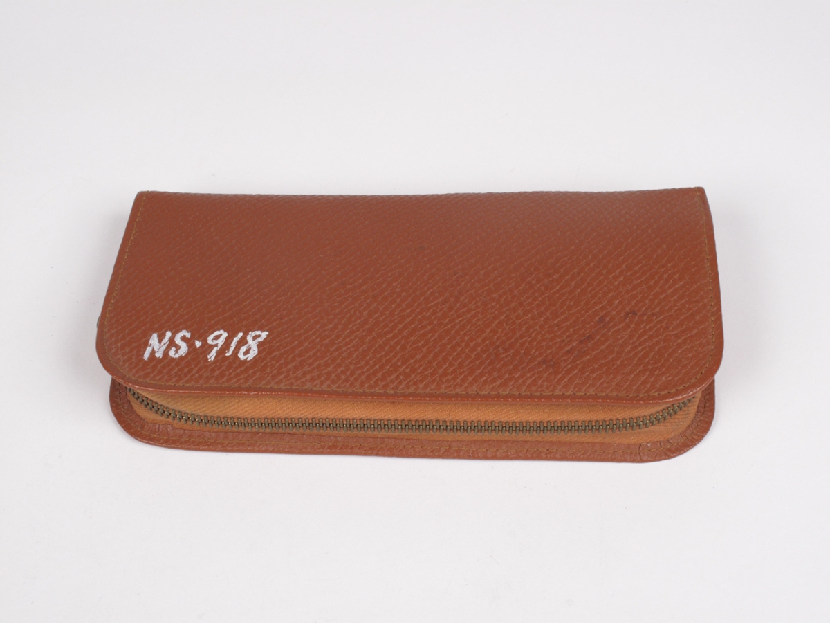 Hlustpípa fyrir bæði eyru (Binauricular stethoskopi). Í brúnni plasttösku. Með 3 mism. gerðum af fjærenda stykkjum. Merkt: Erka. Aesculap I, A-7288 Dreifach-Stethoskop in Kunstledertasche. Úr eiga Bjarn Snæbjörnssonar læknis.