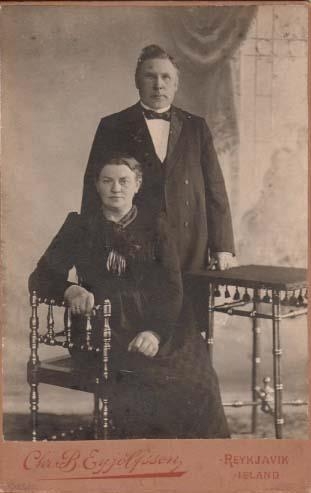 Þessi mynd er af prófastshjónunum á Görðum á Álftanesi. Þeim sr. Jens Pálssyni sem fæddur var árið 1851 og dáinn 1912 og konu hans Guðrúnu Pétursdóttur, dóttir Péturs Guðjohnsens. Hún var fædd 1852 og dáinn 1938. Ekki er vitað nákvæmlega hvenær þessi myn