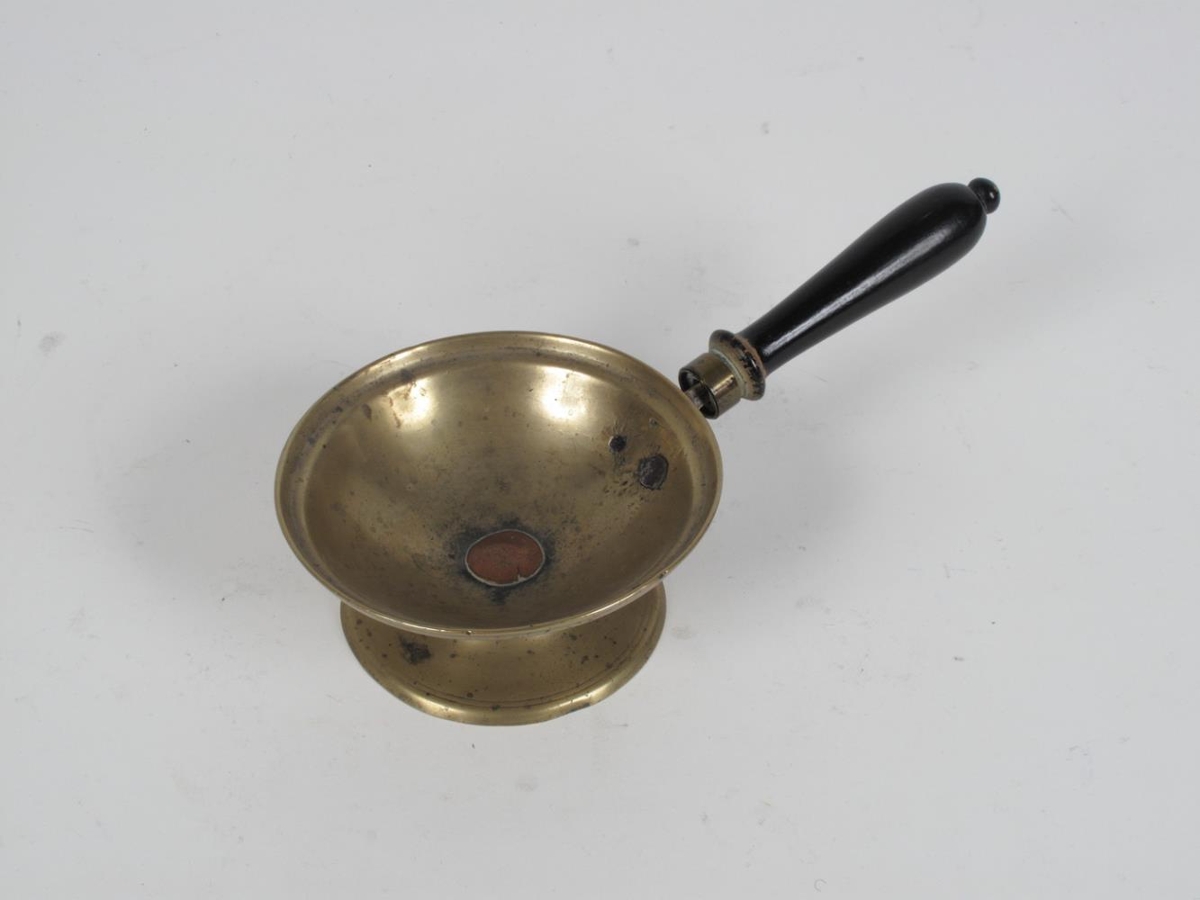 Smyrslabræðslusuðupottur. Látúns smeltedigel með tréhandfangi. Þvermál skálar sem stendur á fæti: 10.7 cm. Gagga Lund söngkona gaf Nesstofusafni og sagði komna úr eigu föður hennar: Michael L. Lund eiganda Reykjavíkur Apóteks, en hann sagði tækið úr Nesapóteki komið. Þorsteinn Gunnarson arkitekt og leikar afhenti gjöfina 01.12.1980.