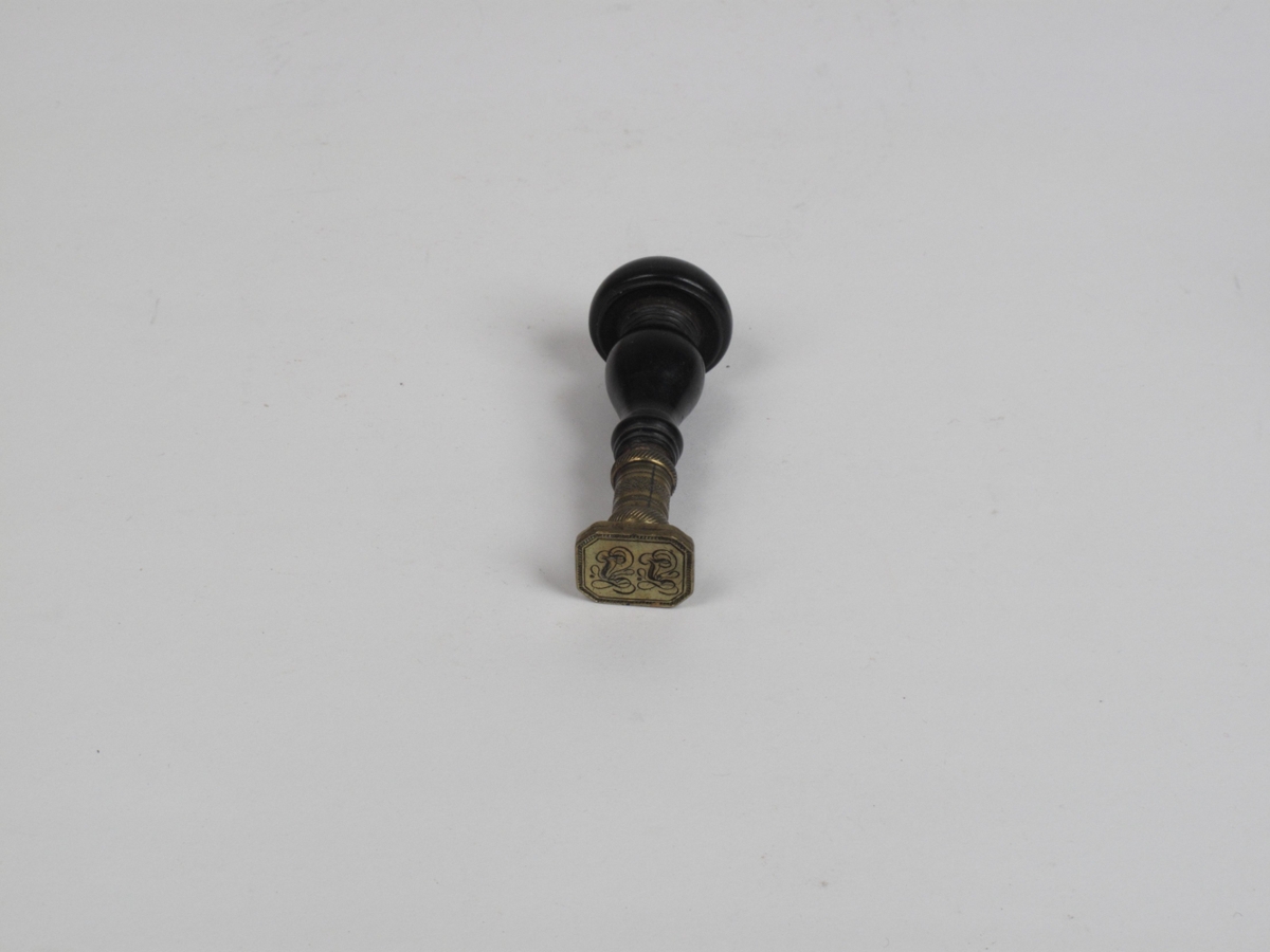 Látúns signet með svart lökkuðu handfangi úr tré. Platan er áttstrend og á grafið: J.J. með strikarönd í kring. Fótur er rendur og flúraður. Úr eigu Jónasar Jónassens landlæknis. Sjá: Blöndal/Jónsson I 1970, bls. 464.