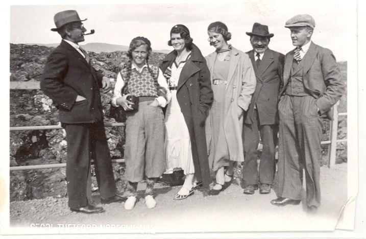 Frá vinstri: Hallsteinn Hinriksson, Hrefna Árnadóttir, Ingibjörg Árnadóttir, óþekkt kona, óþekktur maður og lengst til hægri er Guðmundur Árnason.