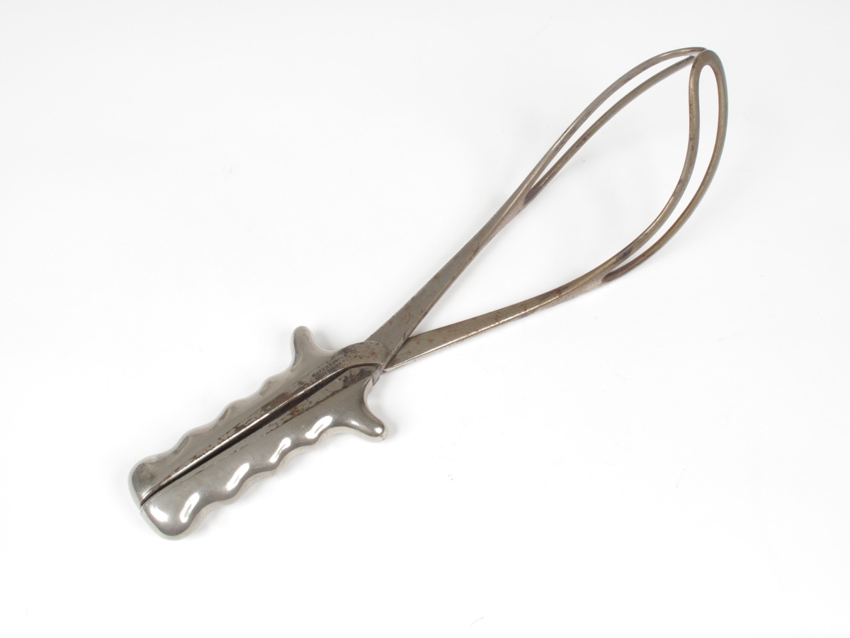 Fæðingartöng af Elliot gerð með enskri læsingu. Krómuð og merkt: A.RASSMUSSEN/KJÖBENHAVN. Úr eigu Torfa Bjarnarsonar læknis (Blöndal/Jónsson I 1970, bls. 756). Var áður í eigu Friðjóns Jenssonar læknis (Blöndal/Jónsson I 1970, bls. 238).
