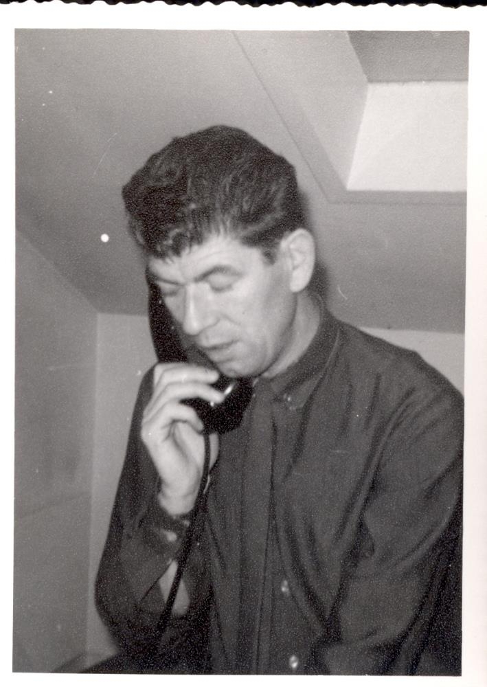 Þessi mynd er ein af mörgum myndum sem Rakel Kristjánsdóttir tók af starfsmönnum Hafnarfjarðarbæjar árið 1964. Á myndinni er Friðþjófur Sigurðsson hjá bæjarverkfræðingi.