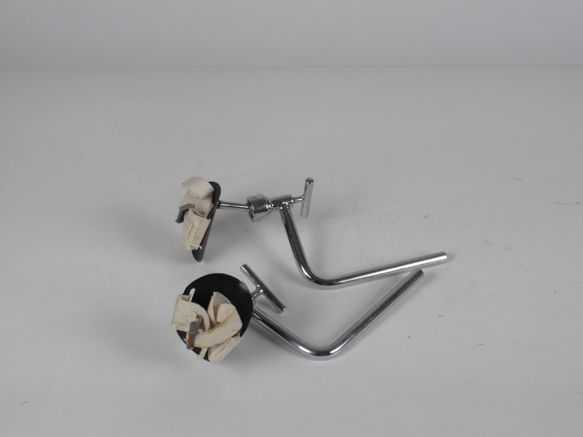 Útlimahalda (fyrir læri á börnum) úr svartlakkeruðu áli? með strigabindingu, tengd með kúlulið við vinkilbeygðan sívalning, lengd: 10 + 16 cm, þvermál: 1.5 cm, það allt krómað. Ómerkt, 2 stk. Úr kassa NS-2264.