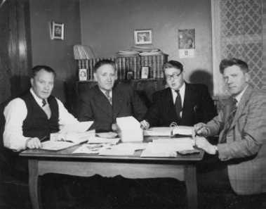 Skólamenn við vinnu. Frá vinstri.Ólafur Þ. Kristjánsson, óþekktur, Vilbergur Júlíusson, óþekktur. Ólafur og Vilbergur voru báðir skólastjórar seinni hluta starfsfáranna.