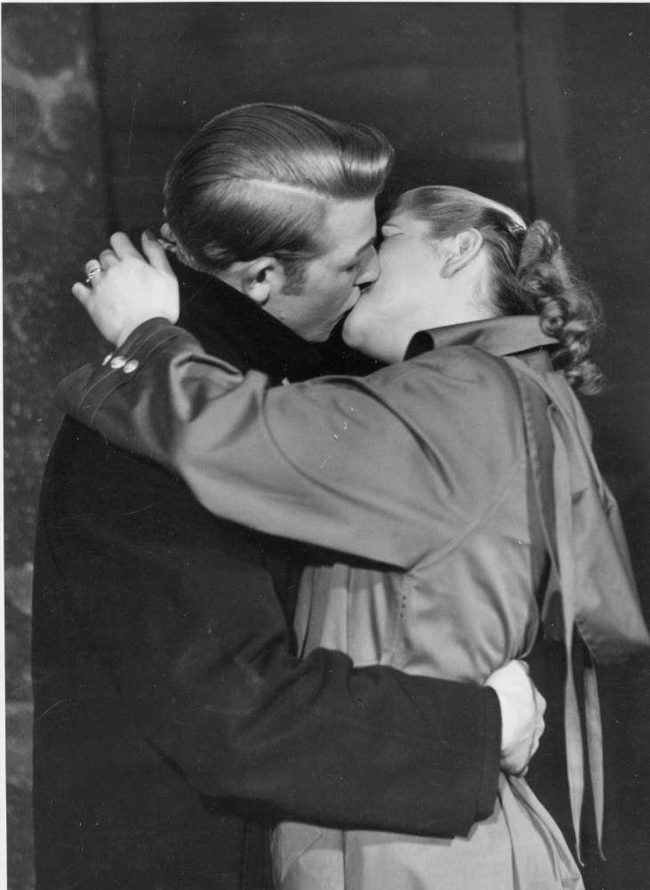 Leikfélag Hafnarfjarðar. Tveir leikarar í hlutverkum sínum. Frá vinstri, Markús Kristinsson og sennilega Katrín Káradóttir.