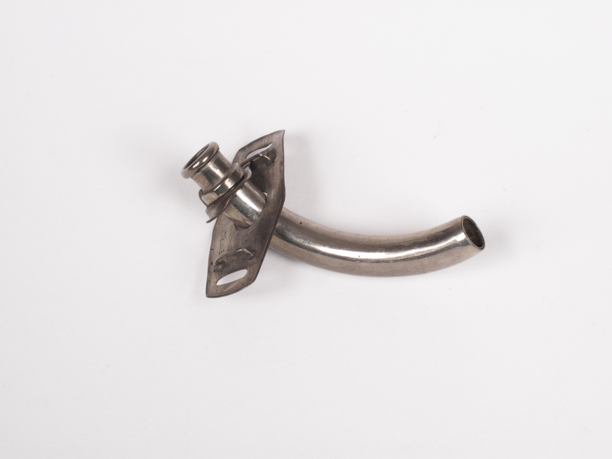 Barkapípa Jackson's úr nýsilfri með staut. Merkt: HEINTEL 4. Mueller bls. 158, A-8505 Tracheatube Jackson. Baldur Johnsen læknir afhenti 3.10.1984. Úr geymslu L.Í. Var í NS 2143.
