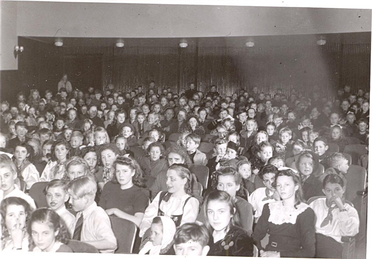 Börn á leiksýningu Barnaskóla Hafnarfjarðar í Bæjarbíói árið 1945