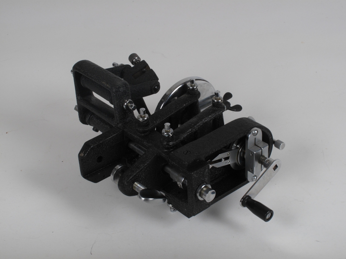 Mikrotom, automatic clinical, merktur: SPENCER LENS CO./ BUFFALO N.Y./ No. 7668 með Co2 frystihaus og parafín og hníf, l. 110 mm, ásamt handfangi fyrir brýningu, A. H. Thomas 31, p.559, 7139 Microtome, automatic clinical, Spencer No 38D, with knife 110 mm, handle and honing guide. Kolsýrufrysti mikrotom NS-1624 er líkur þessum.