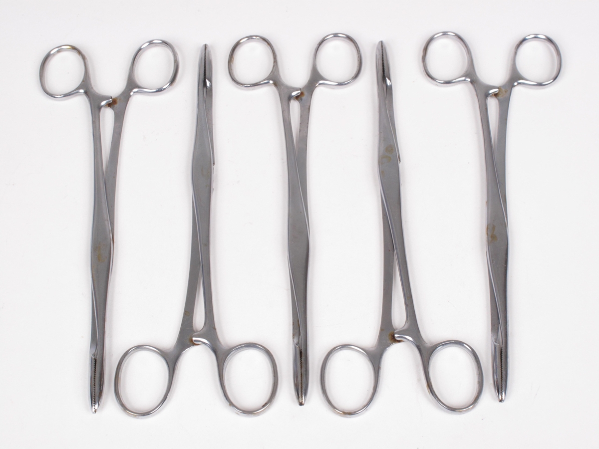 Æðatöng Péan's, hjörur: A, merkt: CHROM, Aesculap I, B-18123 Arterienklemme nach Péan, kurzfassend, 5 stk.