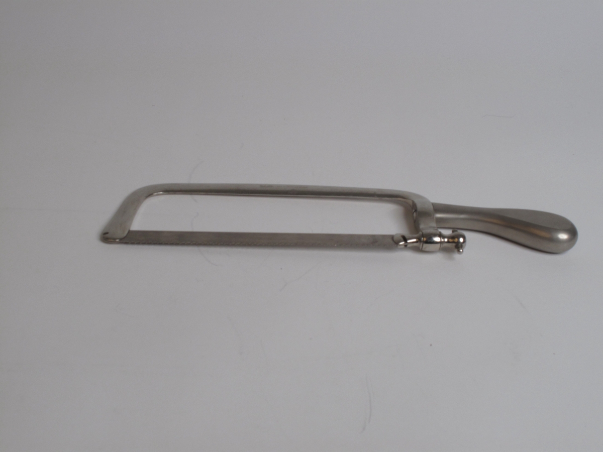 Aflimunarsög Charriére, bogasög, heildarlengd: 35 cm, merkt: [Aesculap merki nr. 1 í verðlista] (myndasjá NS-242), MED.WAARENHAUS ACT.GES. Aesculap I, B-17001. Þessa sög átti Bjarni Jónsson að eigin sögn.