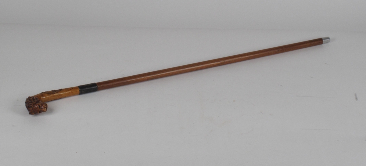 Útskorinn göngustafur úr gínum viði er Guðrún Sophia Claessen (1876-1943) hafði gefið Vilmundi landlækni Jónssyni. Efri (um 20 cm) stafsins eru upprunanlegur og á hann skorið ljósshöfuð og DR./ JÓNAS-/ SEN og eru leifar af gyllingu á skurði hans. Við hann er tengdur 75.5 cm langur bátur er Tryggvi Samúelsson húsvörður Þjóðminjasafnsins hafði gert. Svartir steinar eri í augum ljónsins og bein í 4 tönnum þess, sem sjást í hálfopnu gini þess, og um erlenda smíð er að ræða. Vel má sjá að J. Jónassen hafi fengið stafinn á 25 ára læknisafmæli hans 3. ágúst 1893. Um aðra muni hans sjá NS-513-517. Eftirfarandi muni afhenti Þórhallur Vilmundarson prófessor Nesstofursafni. Þeir voru úr búi foreldra hans.