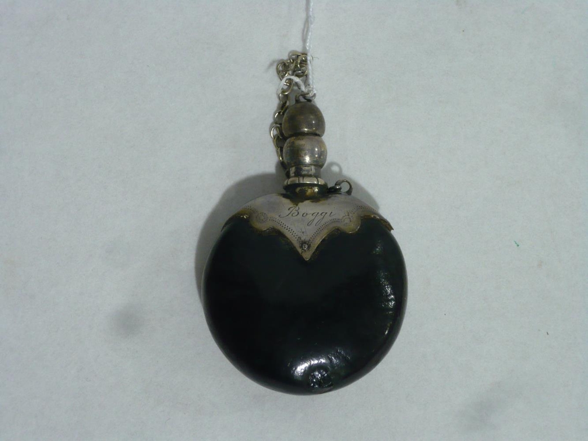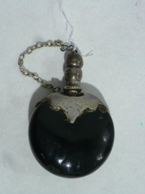 Þetta er tóbaksbaukur úr lausnarsteini. Áður fyrr áleit fólk að þetta væri úr steinaríkinu, en staðreyndin er, að þetta er fræ eða aldin jurtarinnar mímósu, sem vex í Mið-Ameríku og á eyjunum þar í grennd og berst stundum með gólfstraumnum hingað til lands. Þetta var nánast mátulega sjaldan til þess, að eitthvað þótti dularfullt við það. Heitið lausnarsteinn fékk það af því, að ef barnsfæðing konu gekk erfiðlega, þá þótti gott til lausnar því, að leggja þennan hlut í rúm hennar. Annar „steinn“ hringlaði innaní – það var auðvitað sjálft fræið. Þetta minnir því á sveskju – aldin með einu fræi- og litblærinn á þessum bauk er ekki ólíkur því (þ.e. sveskju) Ef nota átti lausnarsteininn undir tóbak, var innri „steinninn“ tekinn úr og settur á þetta stútur úr silfri. Stundum var líka hægt að opna þetta gegnt stútnum, til að koma tóbakinu þar inn. Á þessum bauk er það þó ekki þannig, heldur er stúturinn skrúfaður af, ef láta á tóbak í. Lausnarsteinn var í minnsta lagi sem tóbaksílát. Þessi er, eins og aðrir, kringlóttur, um 5,5 cm í þvermál og utanmál víddar þar sem hún er mest – nánast í miðju – er 2,2 cm. Stúturinn er 1,6 cm á lengd og tappinn er allt efnismikill, með keðju sem fest er við baukinn, hvort tveggja úr silfri. Skreyttur silfurflötur er umhverfis stútinn og á honum stendur öðrum megin "Boggi" og hinum megin "Frá Söru". Þetta er Borgþór Sigfússon og síðari kona hans, Sara Magnúsdóttir. Lausnarsteininn fann Sara sjórekinn í Miklaholtshreppi á Snæfellsnesi. Silfurbúnaður hans eru handverk Gunnars Hjaltasonar gullsmiðs. Gefandinn er fóstursonur Borgþórs, Benedikt ElÍnbergsson.