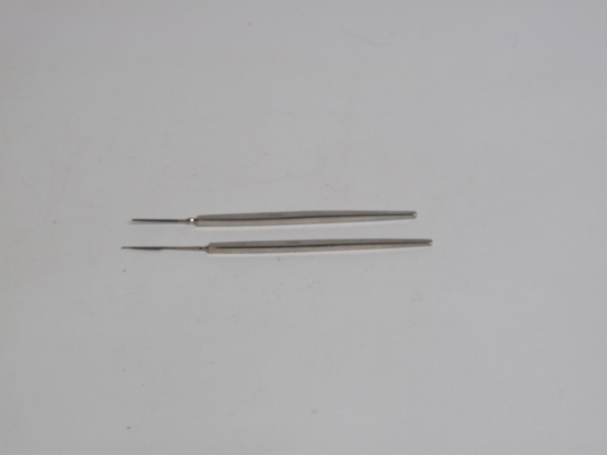 Sjá NS-4522. Handfang og blað eru steypt í einu stykki. Handfangið er ferkantað en mjókkar í endann. Blað sköfunnar er 2.5 cm langt. Sjá Aesculap (8. Auflage) bls. 943 C-1100 (Tätowiernadel).