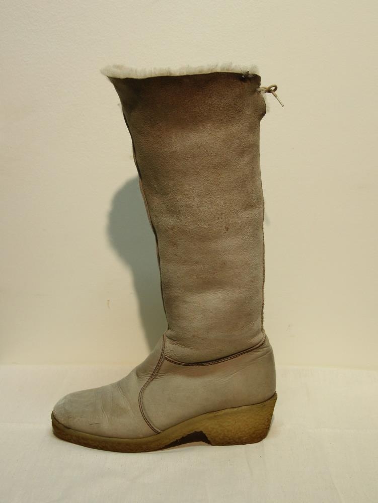 Stígvélið er drapplitt og með gúmmísóla. Stærð 40.