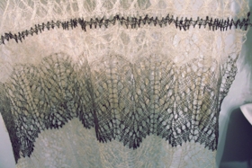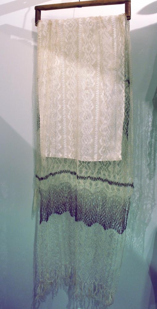 Saga: Fyrsta fína sjalið sem Jóhanna Jóhannesdóttir (1895-1989) á Svínavatni gerði. Hún sá einu sinni svo fínt sjal að draga mátti það í gegnum giftingarhring. Henni tókst að gera eitt slíkt og var sjalið það fyrsta af fjölmörgum slíkum sjölum. Sjalinu fylgdi bréf til frú Þuríðar Sæmundssen frá Jóhönnu á Svínavatni. Dagsett á Svínavatni þann 20. desember 1961.