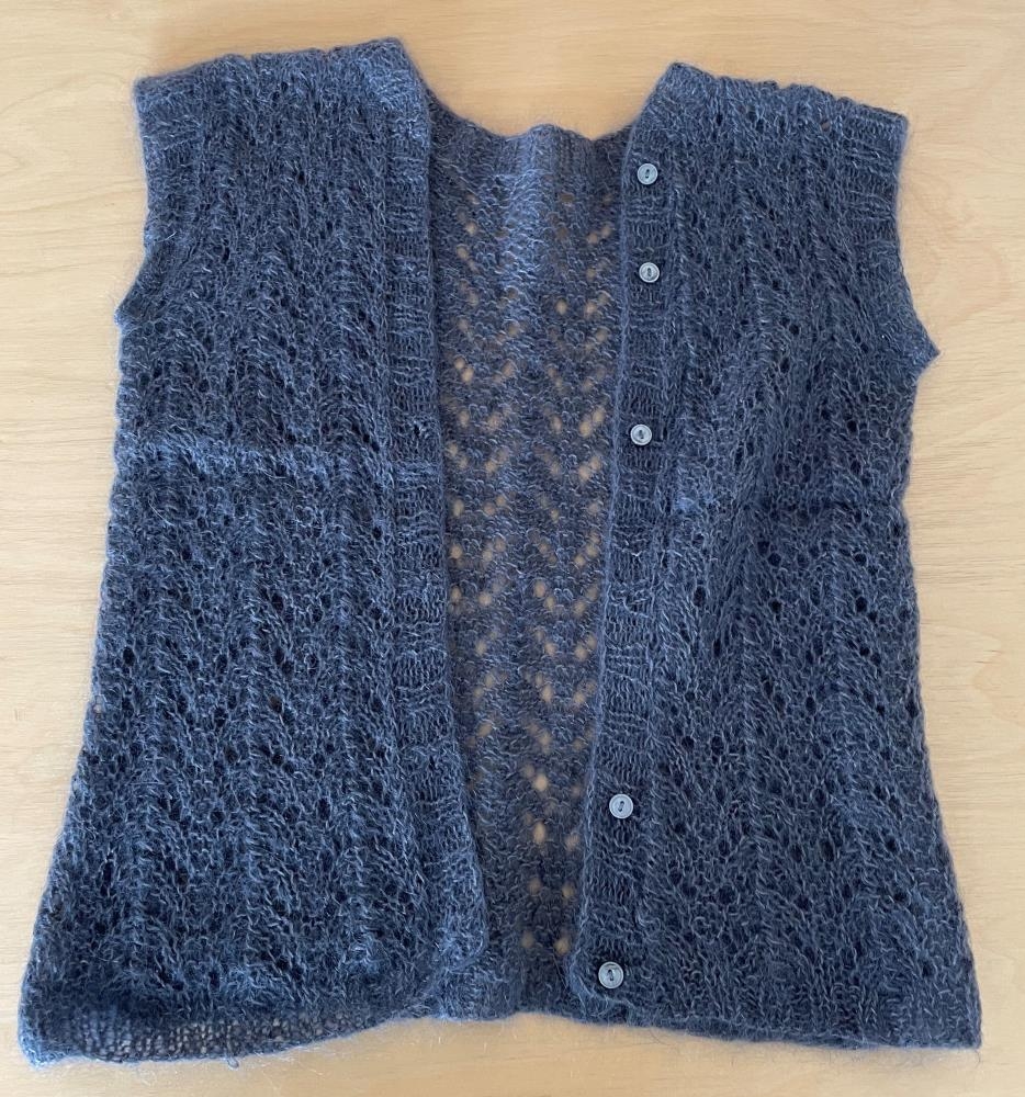 Vesti - Úr gráu móhair. Spaðaprjón, skeljaprjón. Hneppt.