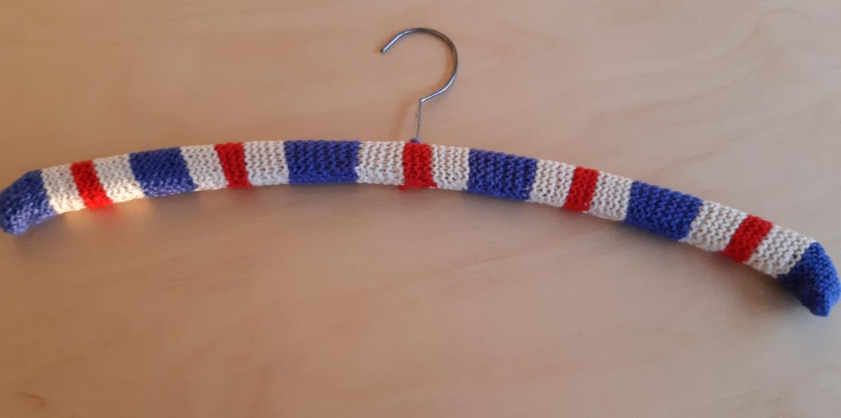 Herðatré - Herðatré, prjónað utan um það með perluprjóni í fánalitum.