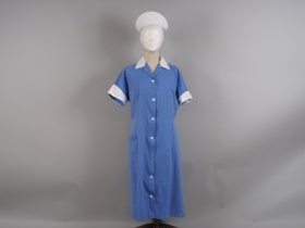 Þessi gerð af hjúkrunarnemabúningi var tekinn til notkunar af Hjúkrunarkvennaskóla Íslands 1945 og var þá sá röndótti lagður af. Blár aðsniðinn (prinsessusnið?) í 6 stykkjum, hvítur áfastur kragi og hvít fastsaumuð uppslög á stuttum ermum. Fram til ársins 1952 var notuð s.k. blæja 2007-43 við þennan búning en þá voru teknir upp s.k. kappi 2007-41 (skólakappar) ekki mátti bera búninginn án kappans. Svunta var ávallt borin við búninginn. 2007-54.