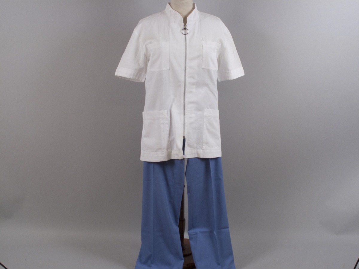 Hjúkrunarnemabúningur karla. Buxur svipaðar 2007:33 nema hvað skálmarnar á þessum eru útvíðar og bendir það á Elvistímabilið.
