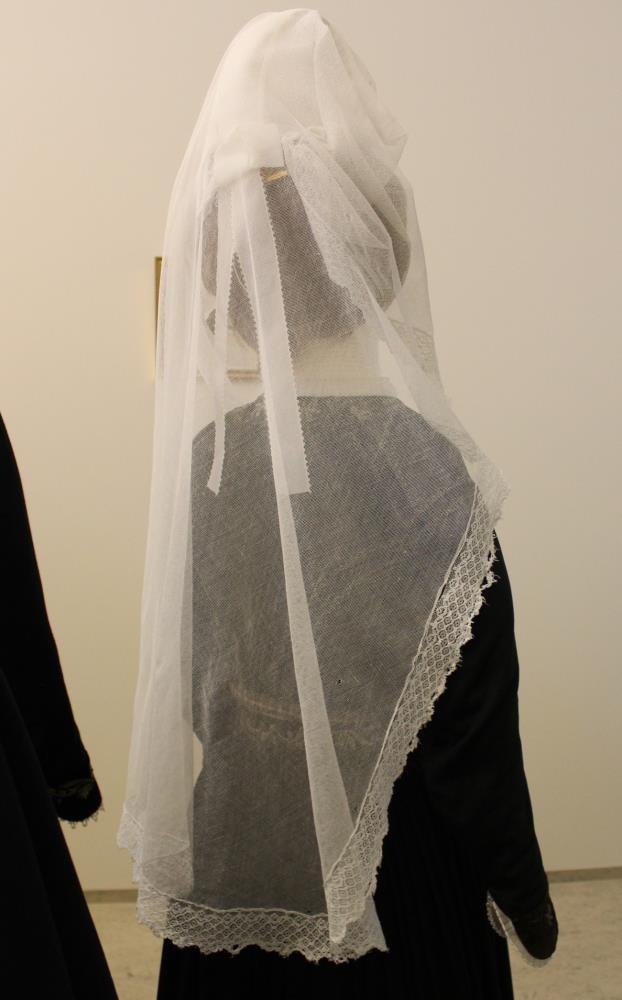 Blæja, faldur a - Hvítur faldur fóðraður með lérefti.