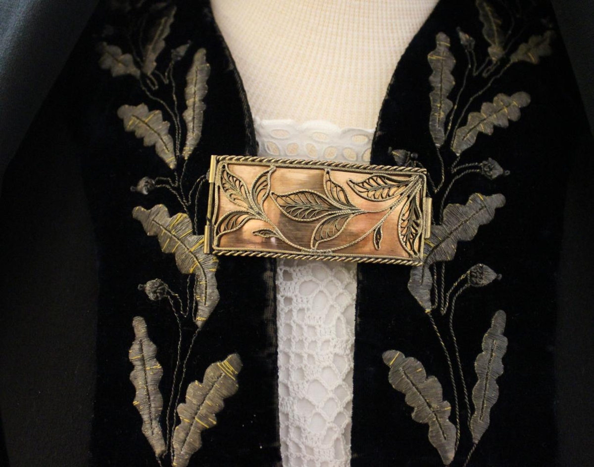 Saga: Skautbúningur sem Anna Jóhannsdóttir, Mjóadal átti og saumaði 1885. Baldýrað er á treyjuna en skatterað (sóleyjaruppdráttur) á pilsið. Silfrið smíðaði Björn Símonarson gullsmiður á Sauðárkróki. Anna seldi búninginn móðursystur sinni Sigurlaugu Jónsdóttur á Torfalæk um aldarmótin. Gaf hún tengdadóttur sinni Ingibjörgu Björnsdóttur húsfreyju á Torfalæk hann. Búningurinn var í eigu Ingibjargar á meðan hún lifði. Notaði hún hann við hátíðleg tækifæri svo sem við fermingu sona sinna og brúðkaup. Afkomendur Ingibjargar og Jóns gáfu safninu hann árið 1976 þegar safnið var formlega opnað.